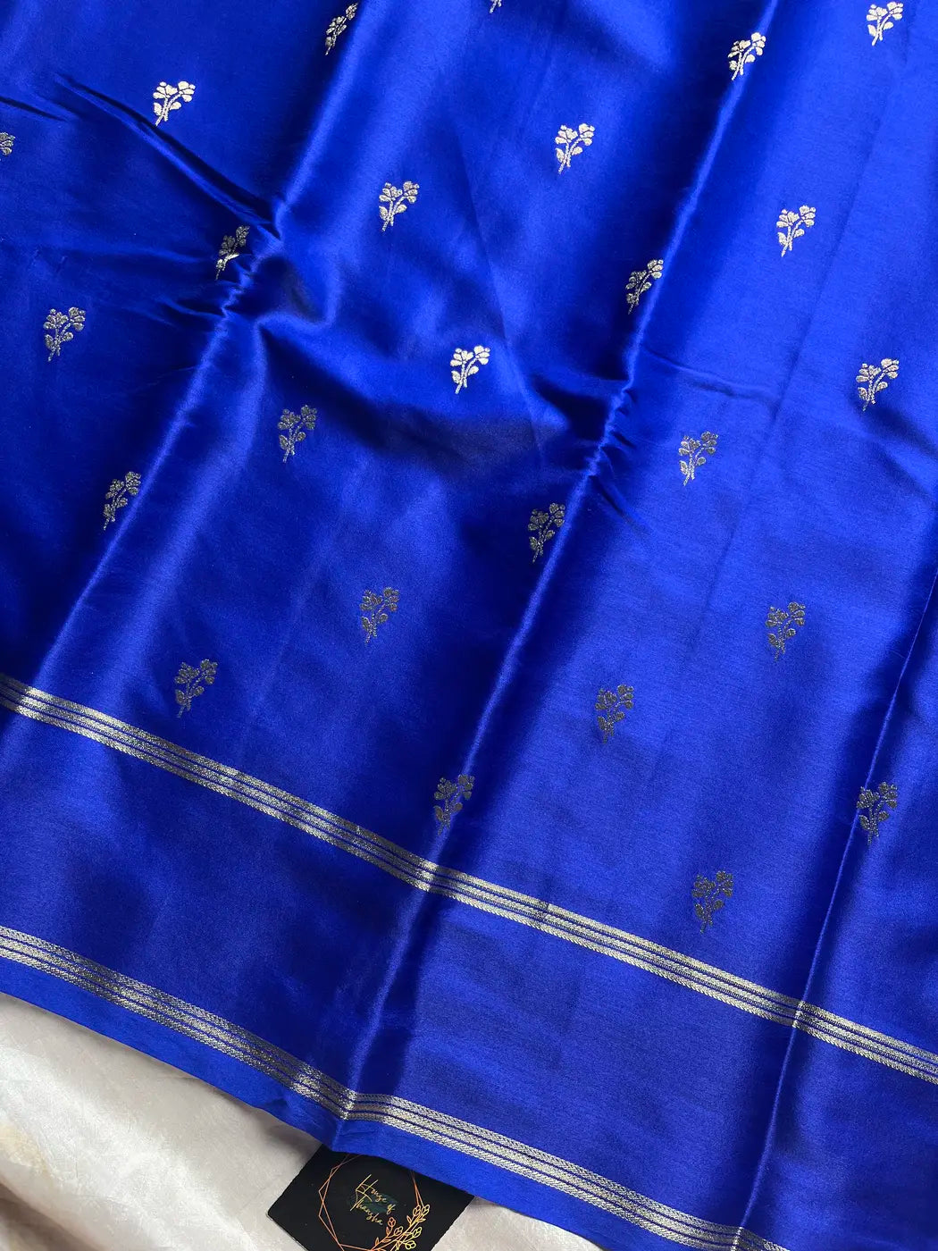- Motif: Subtle golden zari