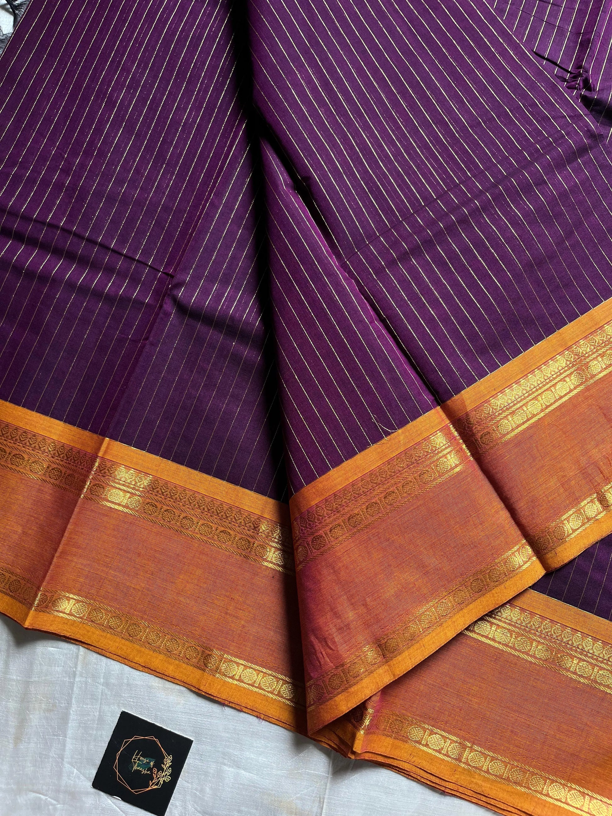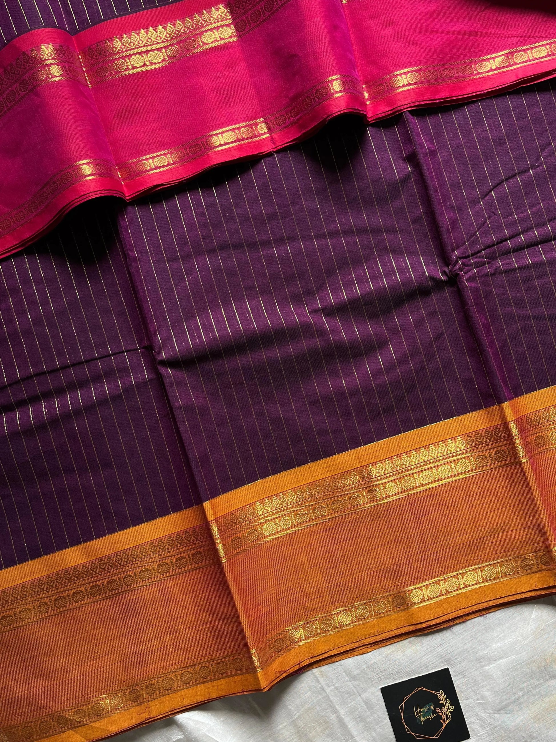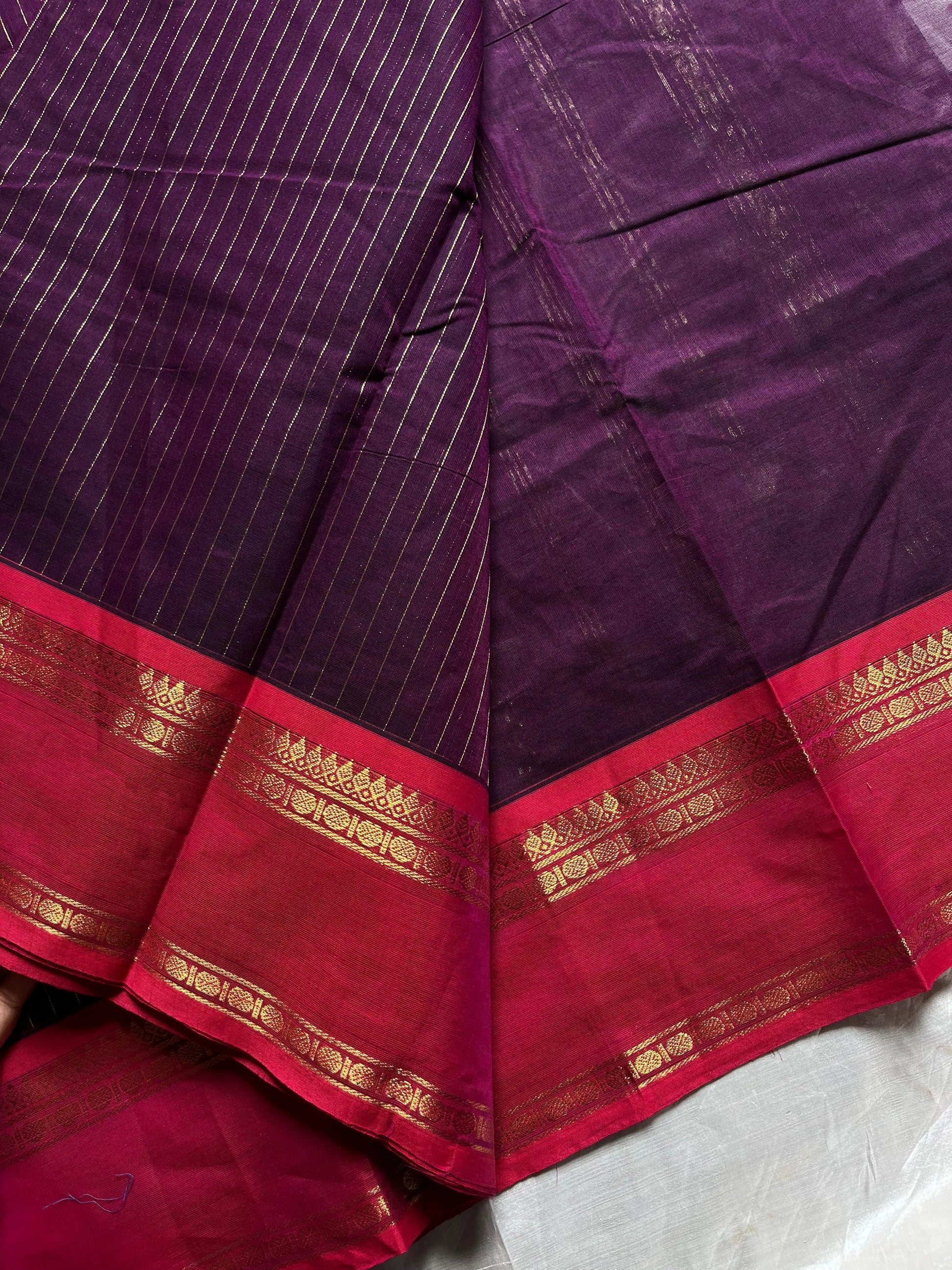 Zari Edition | Dark Purple Kanchi Cotton Saree with Dual Border