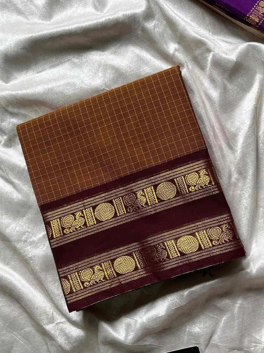 Kattam Edit | Chettinadu Checked Saree – Honey Brown