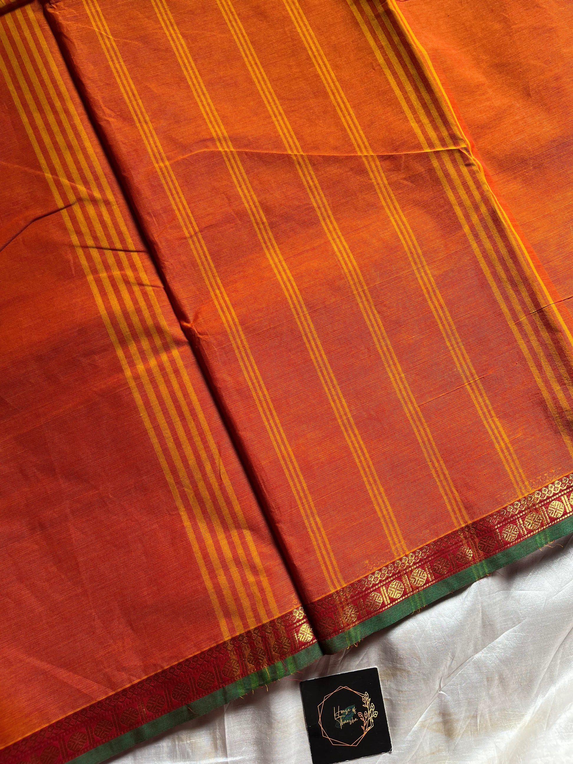 Subtle Weaves – Orange Kanchi Cotton Saree with Small Border