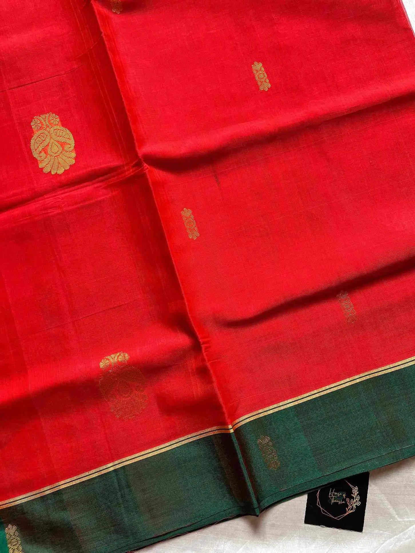 House of ThanshaVegan Silk Saree – Bold Orange | Handloom Art Silk