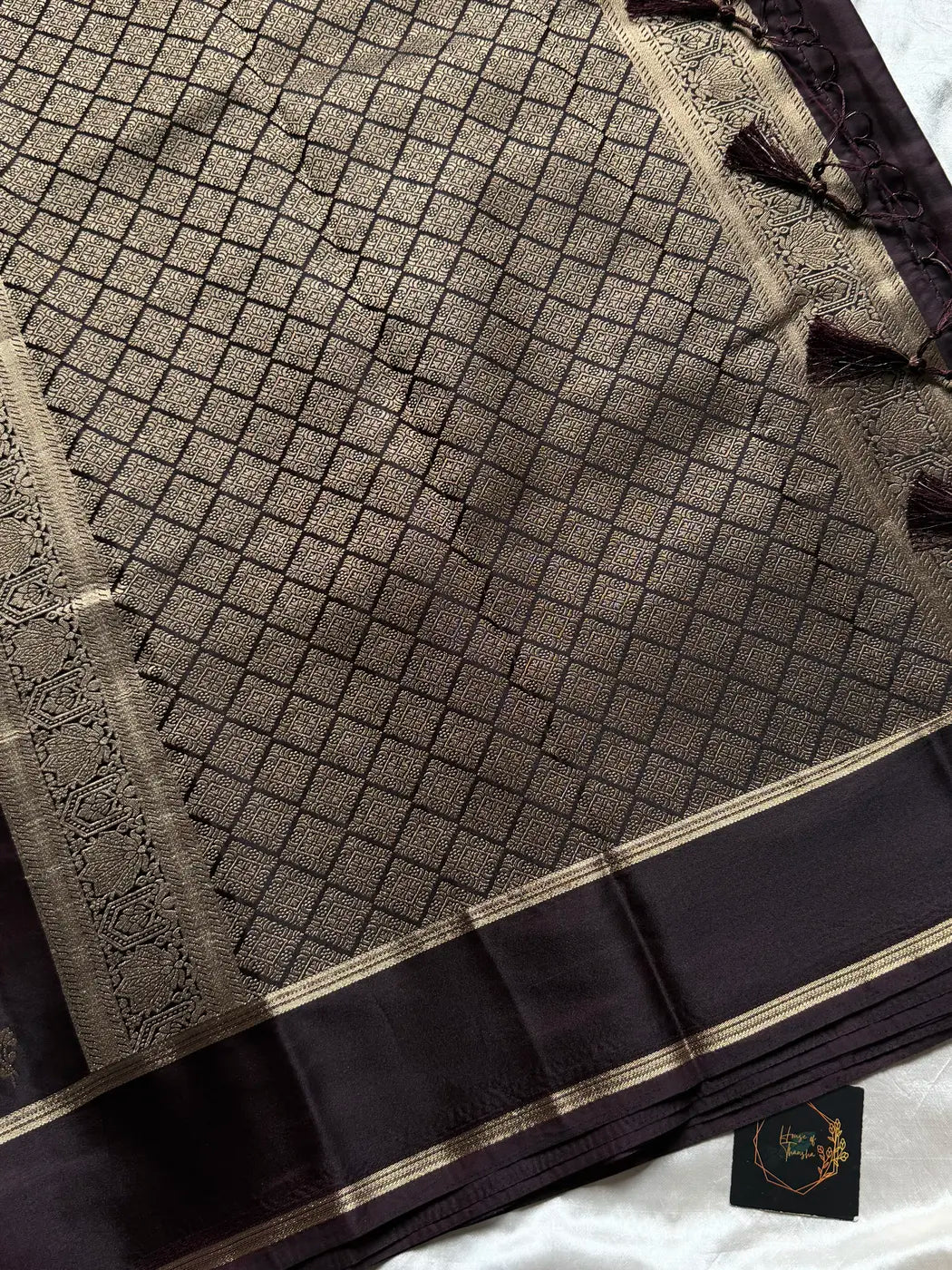House of ThanshaCrepe Silk Saree – Coffee brown