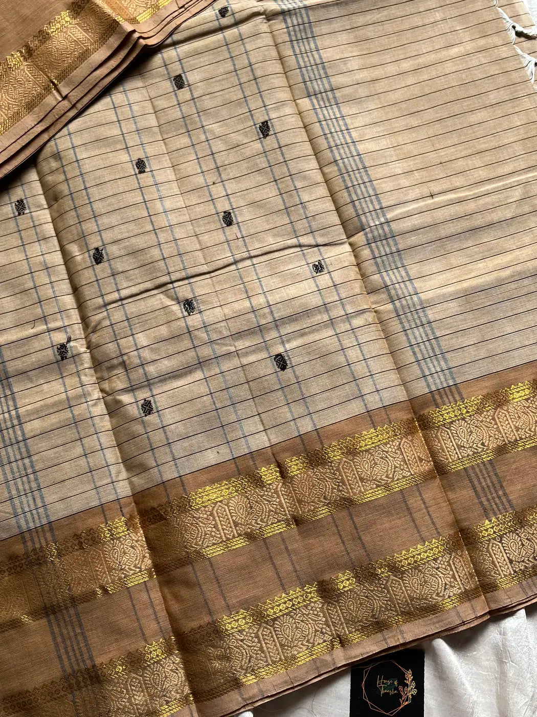 House of ThanshaKattam Edit – Beige Checked Chettinadu Cotton Saree