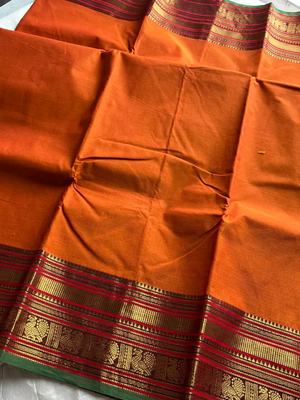 Subtle Weaves | Orange Kanchi Cotton Saree