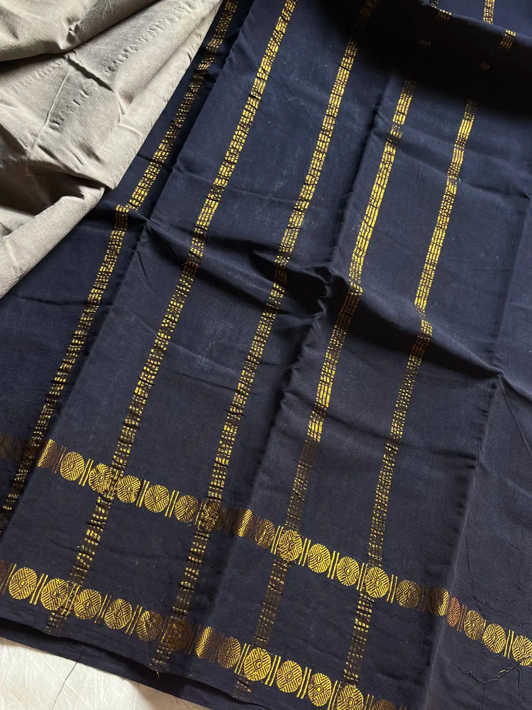 Sungudi Cotton Saree - Ash & Black