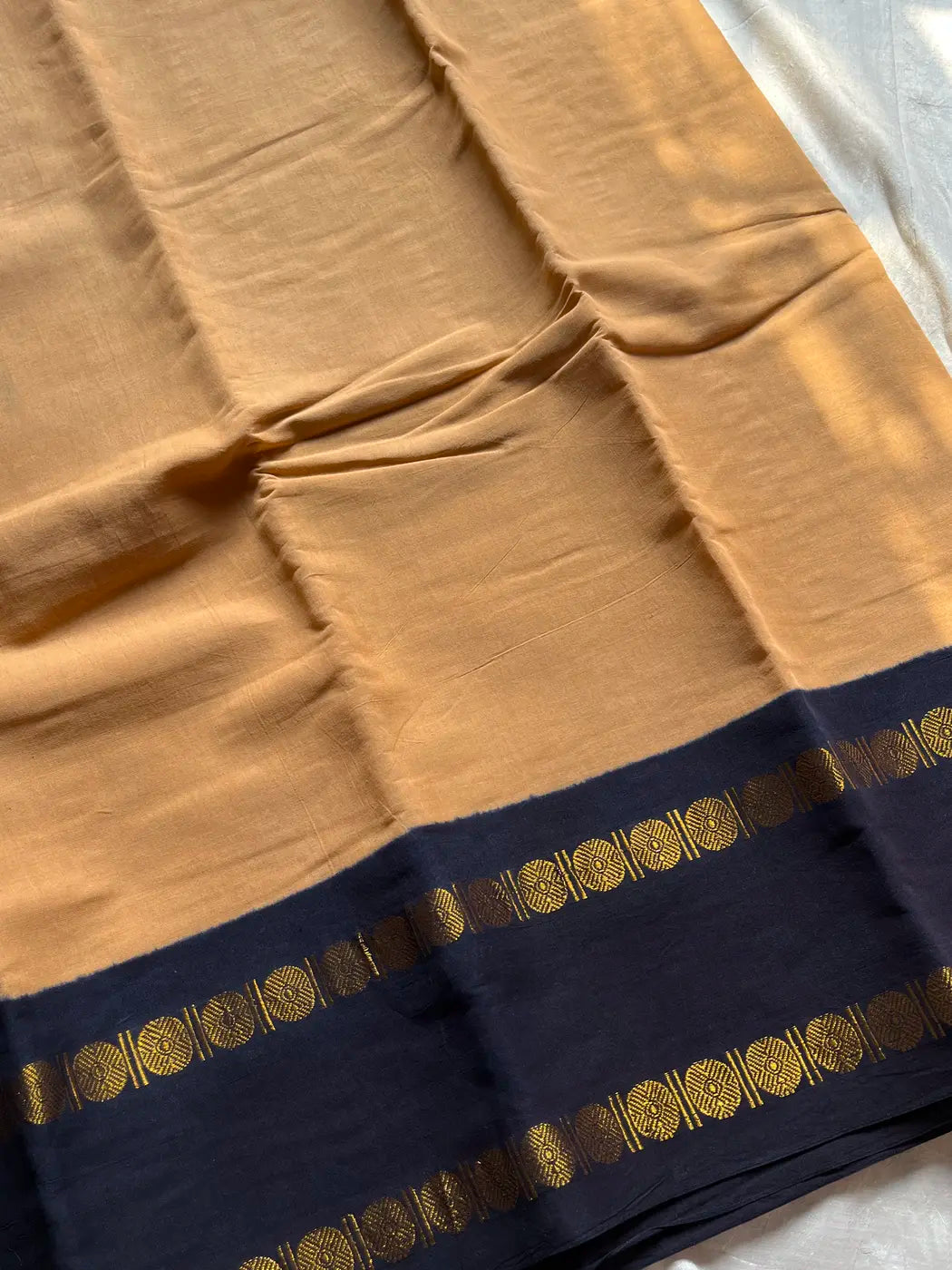 Sungudi Cotton Saree - Tan Beige & Black