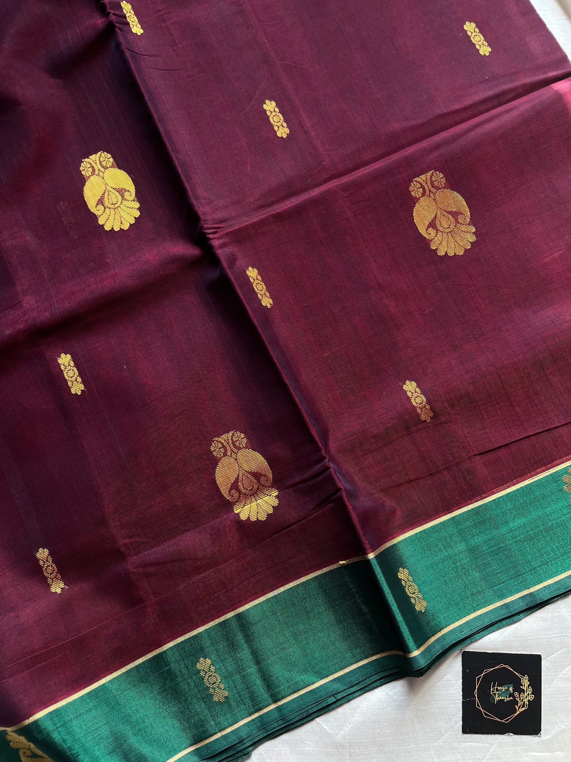 House of ThanshaVegan Weaves – Dark Maroon 10 Yards Handloom Art Silk Saree